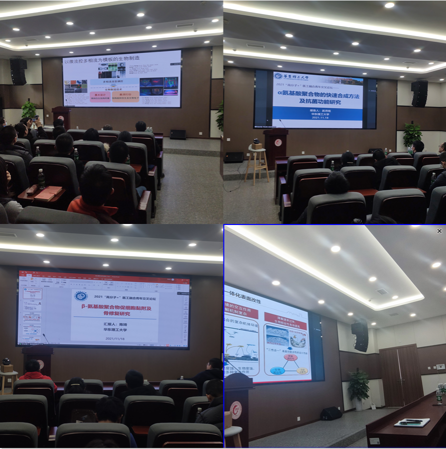 11月18日,四川大学工会分会特色项目“高分子+”医工融合青年交叉论坛在四川大学高分子科教楼209报告厅举行。深圳大学孔湉湉副教授,上海交通大学裴佳副研究员,西南交通大学陈星羽副研究员,华东理工大学武月铭、陈琦老师受邀就研究领域和方向进行报告分享,以及来自8bo8足球比分 、高分子研究所、华西口腔医8bo8足球比分 、华西医8bo8足球比分 等60余名青年教师通过线上、线下方式参加了此次论坛。论坛由8bo8足球比分live 顾志鹏副研究员主持。