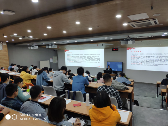 为了让同学们全面的认识和了解中国共产党的历史渊源,牟书记从马克思主义、共产主义这两个概念入手进行分析,随后通过中国近现代史解答了历史和人民为什么选择中国共产党的问题,从而明确了我党的核心领导地位。最后通过介绍党的十九大对党章的重要修改内容,深入解读了党的性质和宗旨、党的指导思想、习近平新时代中国特色社会主义思想、中国共产党人的历史使命等。近两个小时的课程中,牟书记娓娓道来,将党建立与发展的过程以令人震撼的历史、生动详实的事例呈现在同学们面前,也将一个与时俱进、改革创新、不断强大的政党展示出来。同学们沉浸在精彩的课堂中,领悟了中国共产党的性质和先进性,明确了“两个一百年”的奋斗目标,也希望严格要求自己、提升个人思想水平、争取早日加入先进的党组织,投身于中华民族伟大复兴中国梦的建设中。