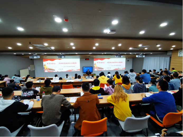 2019年11月3日晚上18:30,在望江校区基础教学楼C座101教室,8bo8足球比分 党委书记牟德富教授面向大三、大四的本科生以及部分研究生同学共计150多人带来了题为“不忘初心,高扬党的伟大旗帜”主题党课。