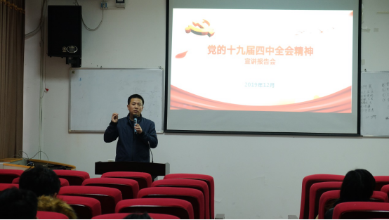 为深入学习贯彻党的十九届四中全会精神,12月19日下午,8bo8足球比分 邀请四川大学“学习贯彻党的十九届四中全会精神宣讲团”专家校纪委副书记滕文浩为8bo8足球比分live 师生带来了题为“学习贯彻四中全会精神,着力健全党统一领导、全面覆盖、权威高效的监督体系”的宣讲。参会人员有8bo8足球比分 两委委员、支部书记、支委委员、辅导员、研究生会主要学生干部、学生会团委望江校区主要学生干部等。