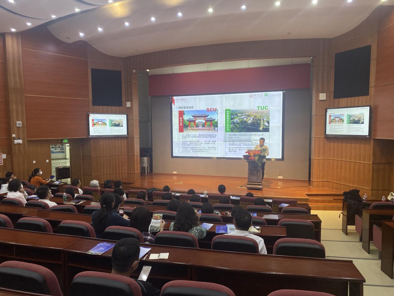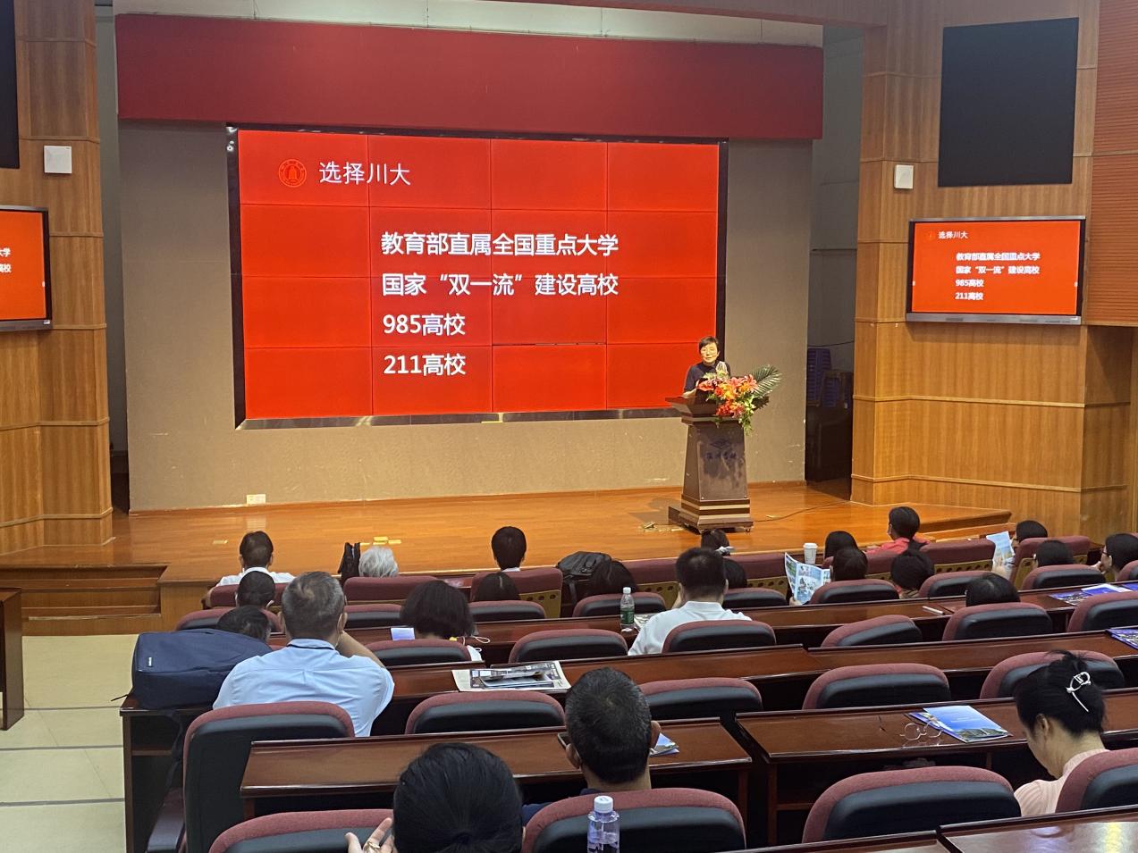 实验中学裴副校长向宣传组介绍了学校情况,并对他们近年来考入川大学生的培养发展给予了极大地肯定,表示将进一步大力宣传,鼓励学生报考我校。