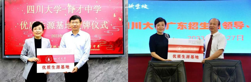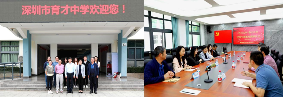 招生宣讲团先后到访了广州广雅中学、深圳育才中学、深圳实验中学,通过座谈会、宣讲会、家长咨询会等方式与各校领导、高三年级班主任老师、学生家长进行了交流沟通,并在深圳育才中学和深圳实验中学举行了“四川大学优秀生源基地”仪式。