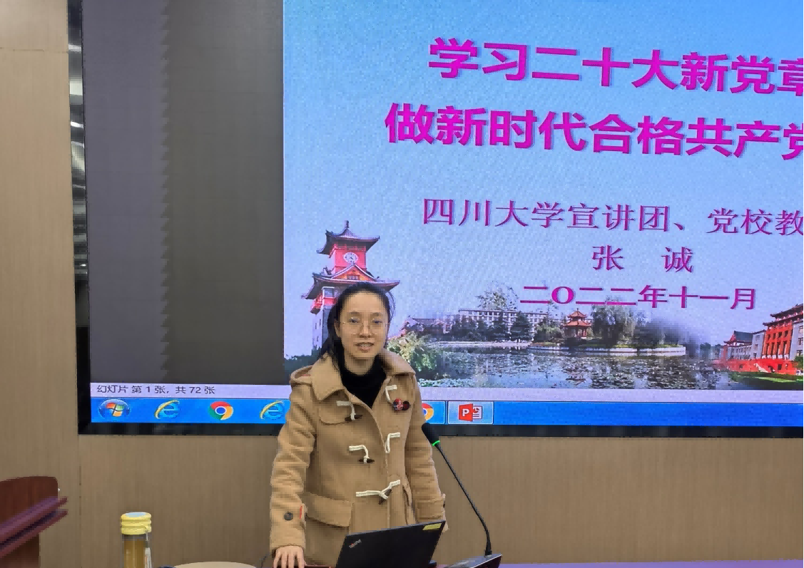 11月23日晚,校宣讲团成员、党校张诚教授在望江校区8bo8足球比分 新科教楼209报告厅,以“学习二十大新党章,做新时代合格共产党员”为题,为该8bo8足球比分 83名学生党员发展对象作专题宣讲报告,8bo8足球比分 研究生辅导员黄思维同志主持了报告会。