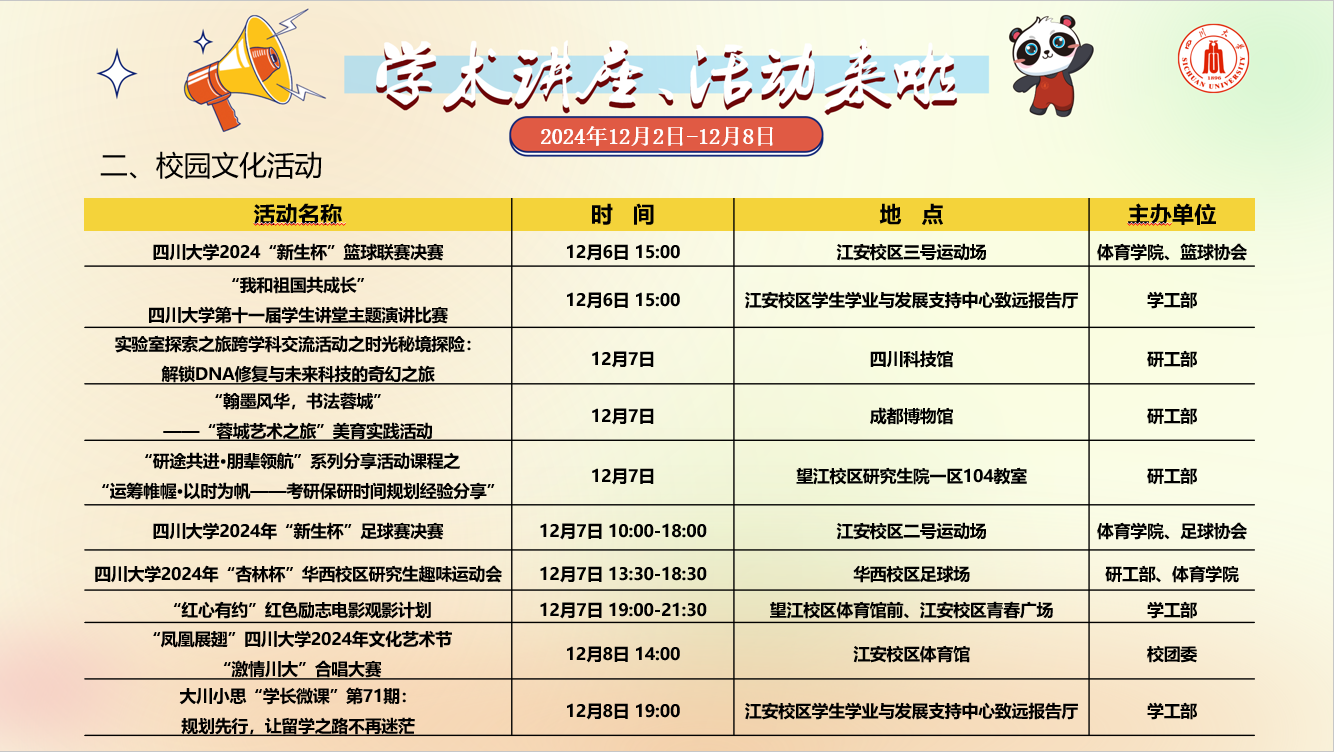 学术讲座及校园活动文化预告(12月2日-12月8日)