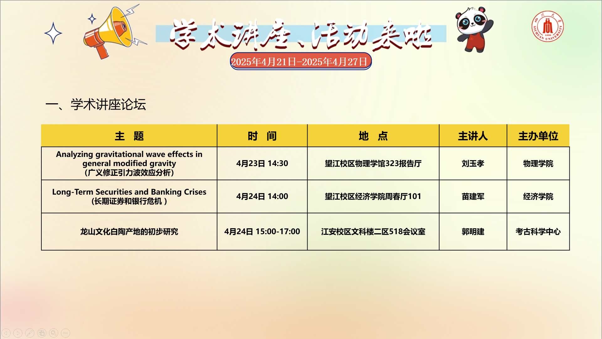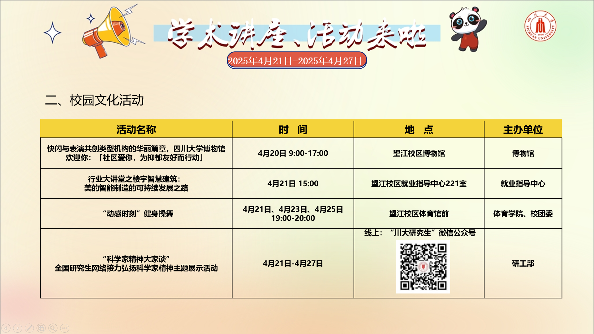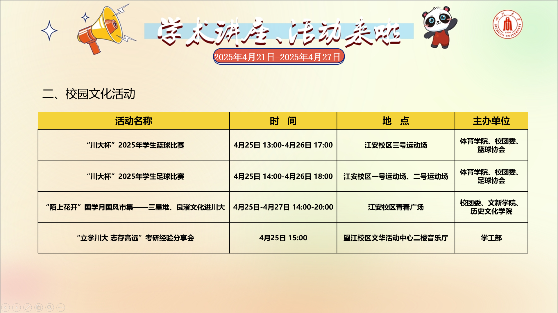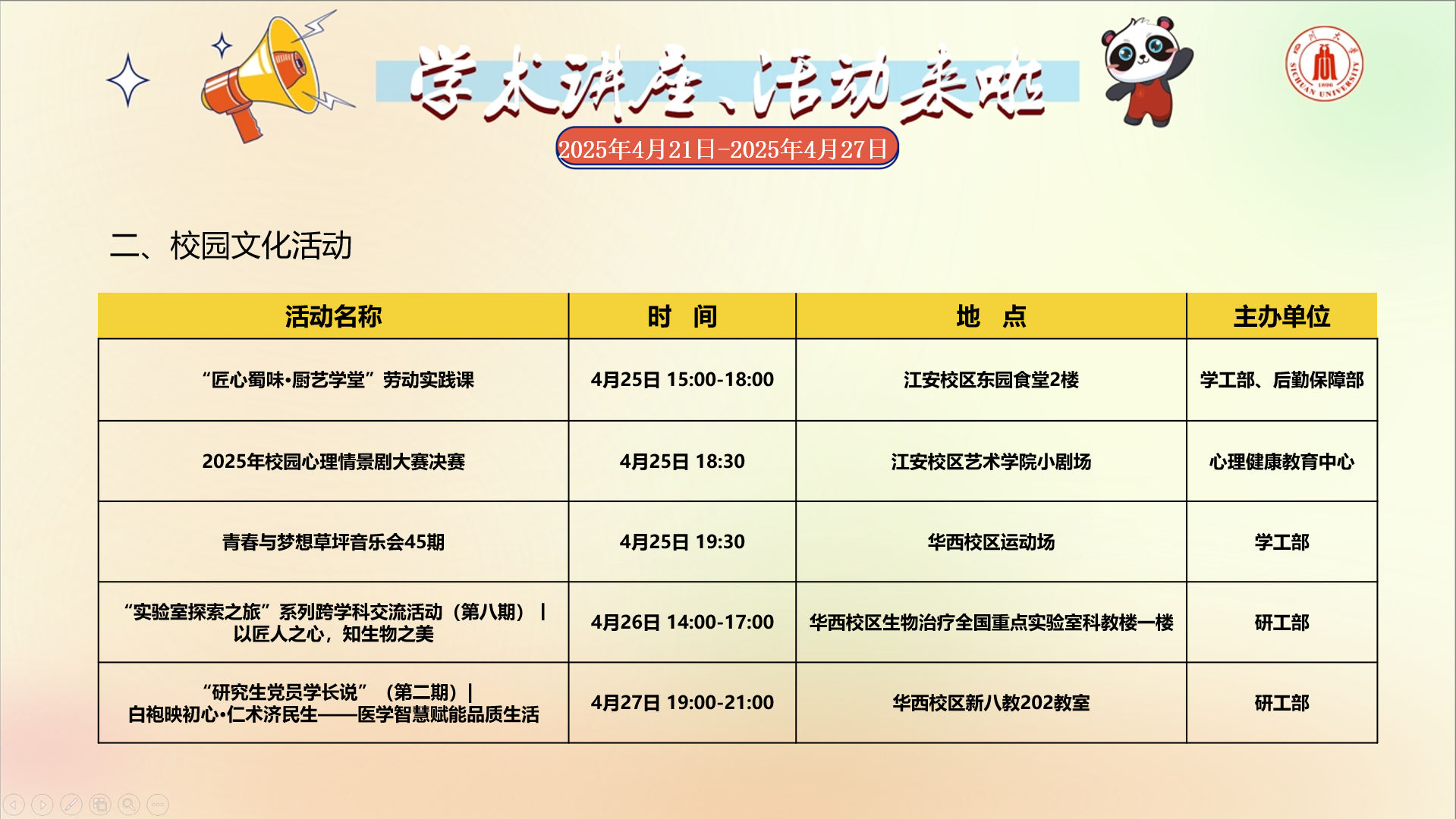 学术讲座及校园文化活动预告(4月21日-4月27日)