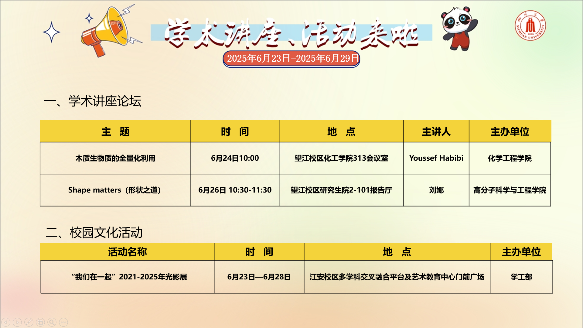 学术讲座论坛及校园文化活动预告(6月23日-6月29日)
