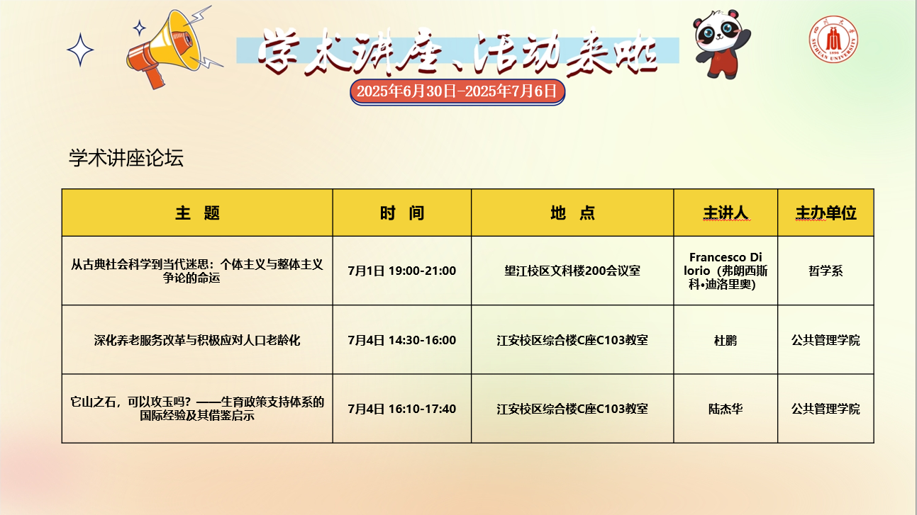 学术讲座论坛及校园文化活动预告(6月30日-7月6日)