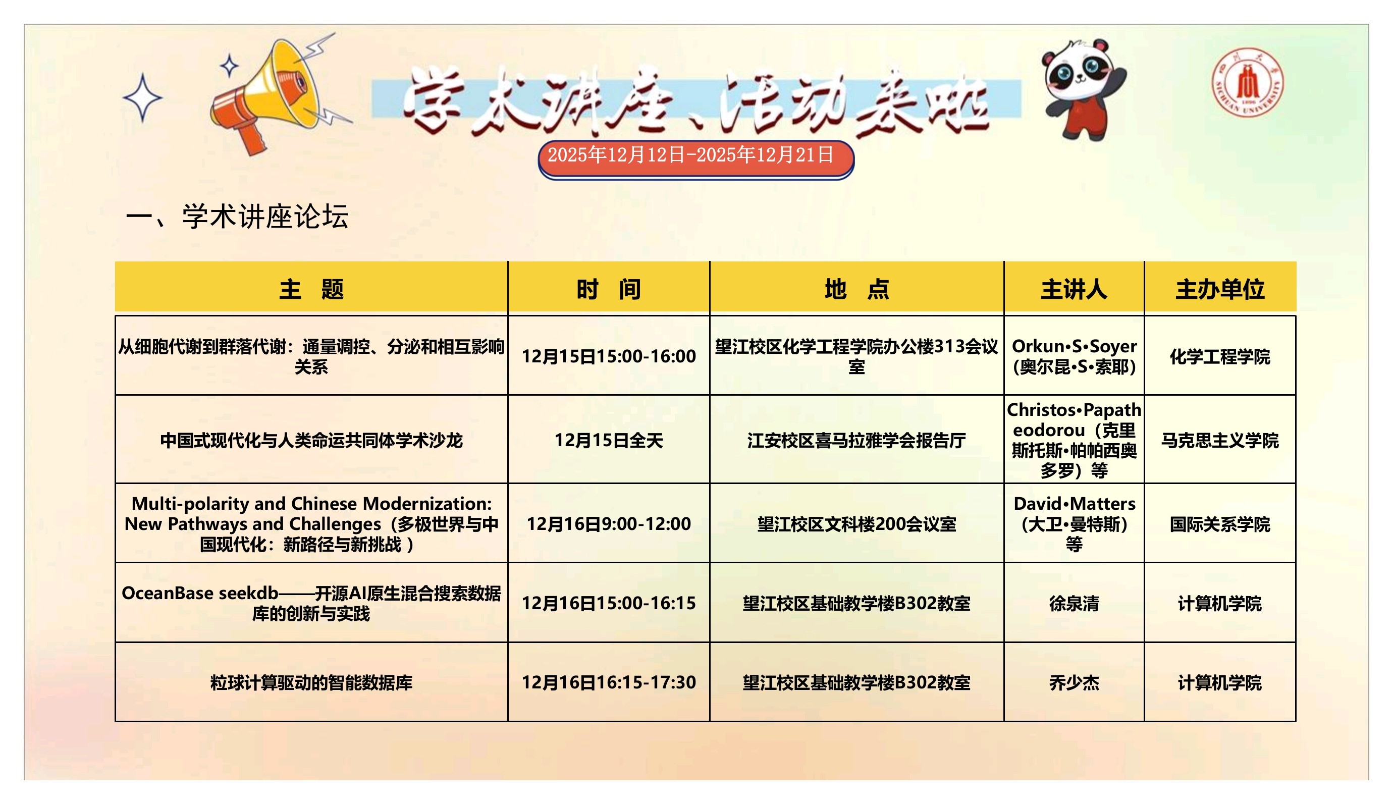 学术讲座和校园文化活动预告(2025年12月12日-2025年12月21日)