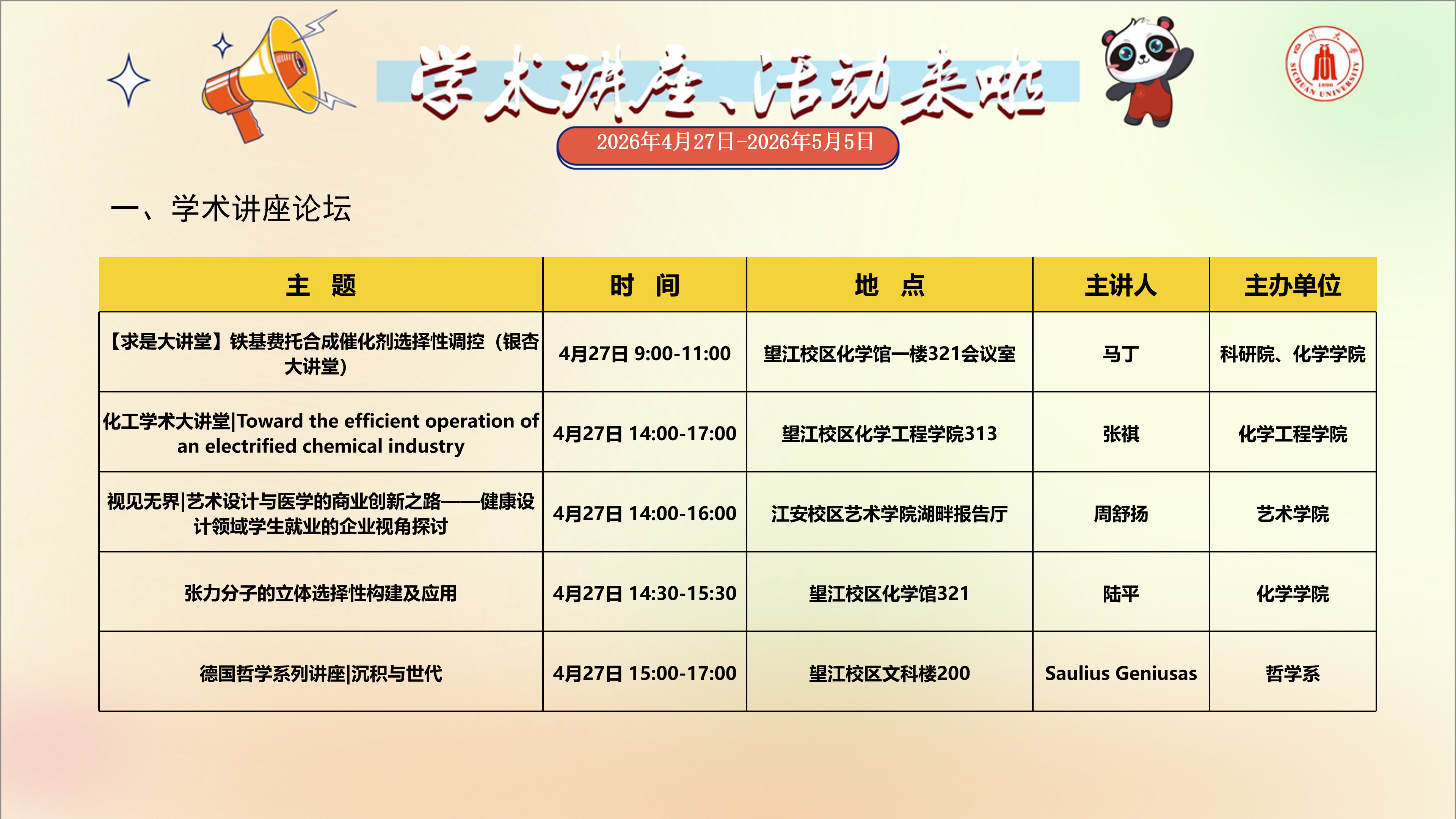 学术讲座与校园文化活动预告(2026年4月27日-2026年5月5日)