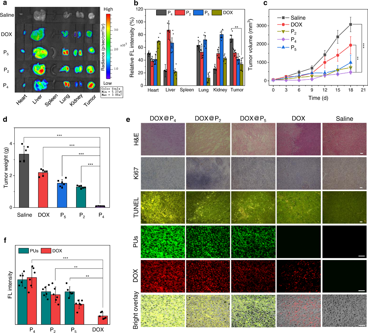 图5.两亲性聚脲基酸酯体内肿瘤靶向和治疗效果