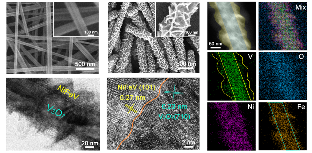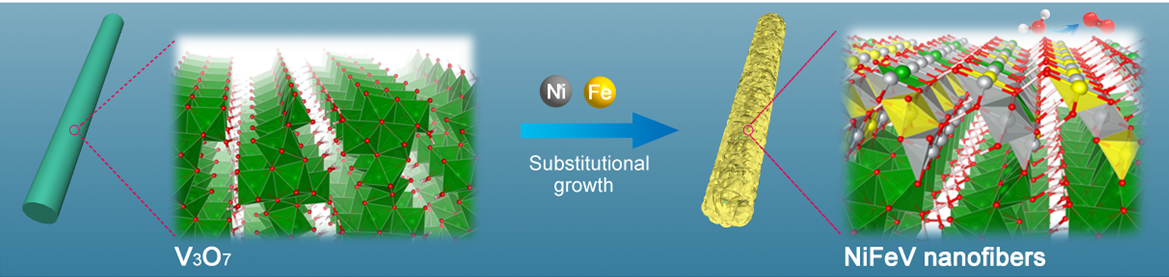 图1.界面原子替代法制备NiFeV纳米纤维示意图