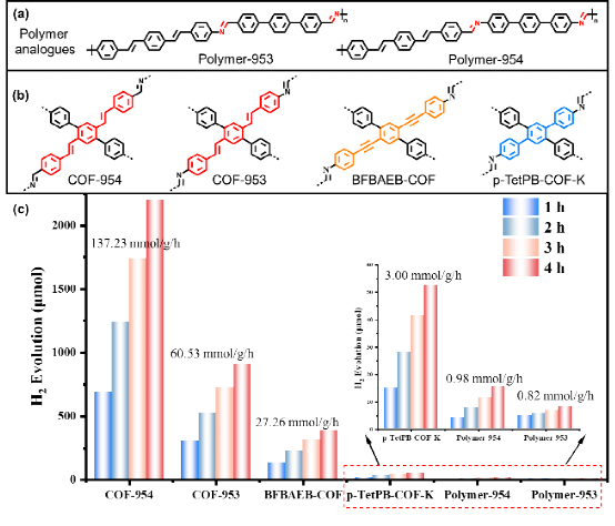 图 3:不同COFs和类似聚合物的化学结构及析氢速率