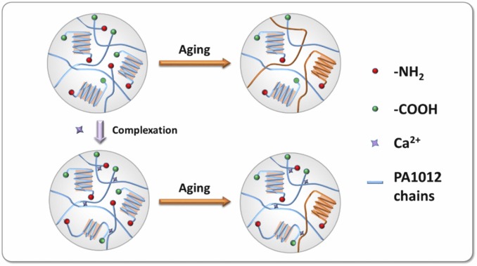 图 2 . 络合改性抑制PA1012粉末后缩聚老化的分子机理