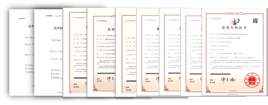 此外,团队还利用开发的独特催化剂,发展了原创独立的山椒素提取纯化技术,能够通过非色谱法的策略大规模从花椒果提取物中精准分离纯净的山椒素分子,首次实现了山椒素的批量化提取。基于上述工作,团队已经在山椒素的提取与功能材料的构筑评价方面申请并成功授权专利7项,其中部分专利已实现技术转让,目前第一期到校的专利转让费用约为200万元。