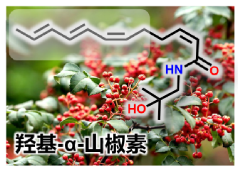花椒原产于中国,是一种重要的植物来源的生物质资源,其富含的多种活性分子(包括酰胺类、萜类等),是四川部分地区的重要农业产业。羟基-α-山椒素是花椒中最具活性的功能分子,其具有特征性的长共轭结构,能够有效地抵御紫外线的侵袭并能清除过量的活性氧自由基,此外其还具有抗微生物、炎症调节、神经保护等功能。前期研究表明山椒素可以有效地降低细胞中活性氧的表达,促进损伤组织的自噬通量,从而降低紫外光诱导的皮肤损伤;此外局部使用低浓度的山椒素制剂可以有效地改善皮肤微环境,从而改善光损伤引起的面部皱纹。然而山椒素因为活性高,在光、热等多种条件下易失活,稳定性较差,给存储和应用带来了极大的挑战。因此在目前的应用场景中,山椒素几乎全都是以花椒果提取物的形式存在,不同种类的花椒品种与不同榨取技术让不同批次的花椒果提取物成分差异较大。在化妆品领域,花椒果提取物的来源大部分依赖于奇华顿香精香料公司的进口。因此,改善山椒素的稳定性,使其从花椒果提取物中进一步解放出来获得纯净的原料,具有十分重要的商业意义。