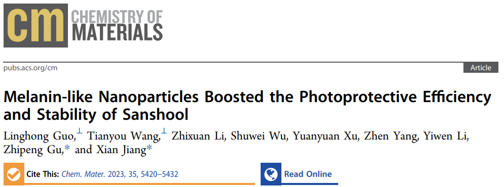 继而,研究团队从植物多酚来源拓展了到了合成多酚上,利用黑色素材料(合成聚多酚的一种)来改善山椒素的稳定性。他们制备了尺寸均匀的黑色素-山椒素纳米粒子,其具有更为良好的紫外线吸收和抗氧化能力并提升了山椒素的稳定性。此外,研究团队还通过皮肤光损伤细胞模型和动物模型研究了黑色素-山椒素复合材料的皮肤渗透性、光保护活性及其潜在机制,这种策略将为改善天然存在的功能分子的关键特性提供良好的平台。相关研究工作以Melanin-like Nanoparticles Boosted Photoprotective Efficiency and Stability of Sanshool为题在Chemistry of Materials期刊上发表。两篇文章的共同第一作者为8bo8足球比分live 博士生王天佑和华西医学皮肤科博士后郭玲宏,共同通讯作者为顾志鹏副研究员和蒋献教授。