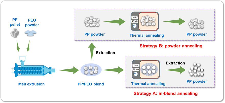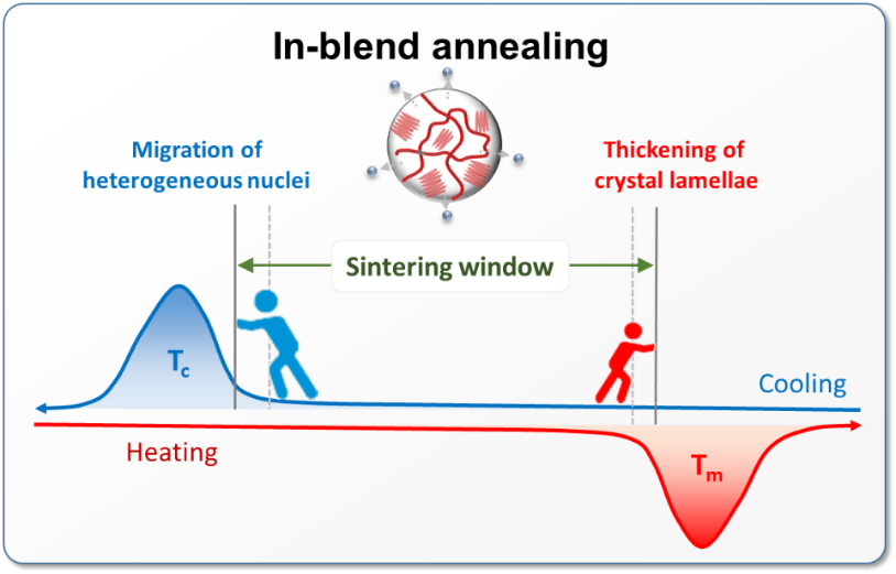 图 4 共混物退火策略拓宽PP粉末烧结窗口的可能机理。