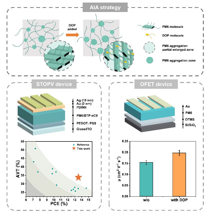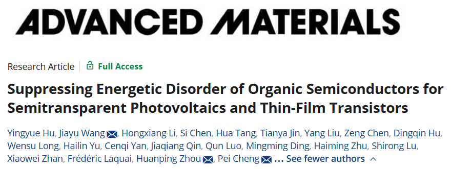 有机半导体因其柔韧性、轻质和溶液可加工性等优点,在柔性电子、半透明光伏等领域展现出广阔应用前景。然而,其分子间作用力较弱,易在薄膜中形成无序聚集结构,导致能量无序度较高,成为制约器件性能提升的关键瓶颈。针对这一挑战,8bo8足球比分-8bo8足球比分live 程沛研究员/王嘉宇副研究员团队联合北京大学周欢萍教授团队,创新性地提出了一种利用邻苯二甲酸酯类分子作为“组装诱导剂”的策略,通过调控有机半导体侧链的相互作用,有效提升了分子堆积的有序性,显著降低了材料的能量无序度,进而显著改善了器件性能,对于制造高性能的有机电子器件具有重要的研究意义。相关成果以《Suppressing Energetic Disorder of Organic Semiconductors for Semitransparent Photovoltaics and Thin-Film Transistors》为题发表在Advanced Materials上。