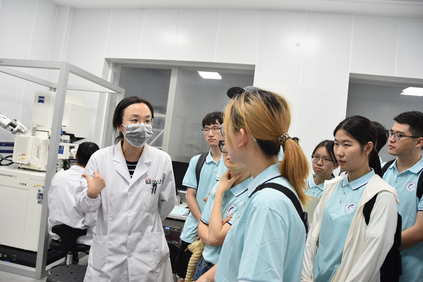 在西湖大学(云谷校区)参观期间,实践团先后到访了西湖大学物质科学公共实验室、生物材料和药物递送实验室、智能高分子材料实验室及新能源材料实验室等研究平台。西湖大学工8bo8足球比分 党委书记黄初东教授对西湖大学的招生模式探索、人才培养理念和基础科学研究情况进行了详细介绍;校友、西湖大学博士生易周翔分享了在西湖大学学习的体会。交流期间,8bo8足球比分 师生对西湖大学在短短五年内构建了与国际接轨的人才选拔和培养模式,产出了一系列面向世界科技前沿的基础研究成果感触颇深。