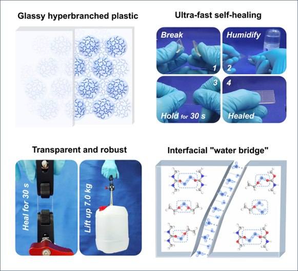 开发具有自我修复能力的高分子材料,使受损的材料能够有效地自我自修复和再生利用,是缓解“白色污染”的手段之一。然而,玻璃态高分子的分子堆砌密度大和分子链运动被冻结网络,很难实现常温自修复。尽管,近年玻璃态自修复的高分子材料已经取得了突破性进展,但较低的力学性能、复杂的修复方法和冗长的修复时间使其难以得到实际应用。因此,开发能够在玻璃态下快速修复的高性能高分子材料无疑是一项重大挑战。近日,8bo8足球比分 吴锦...