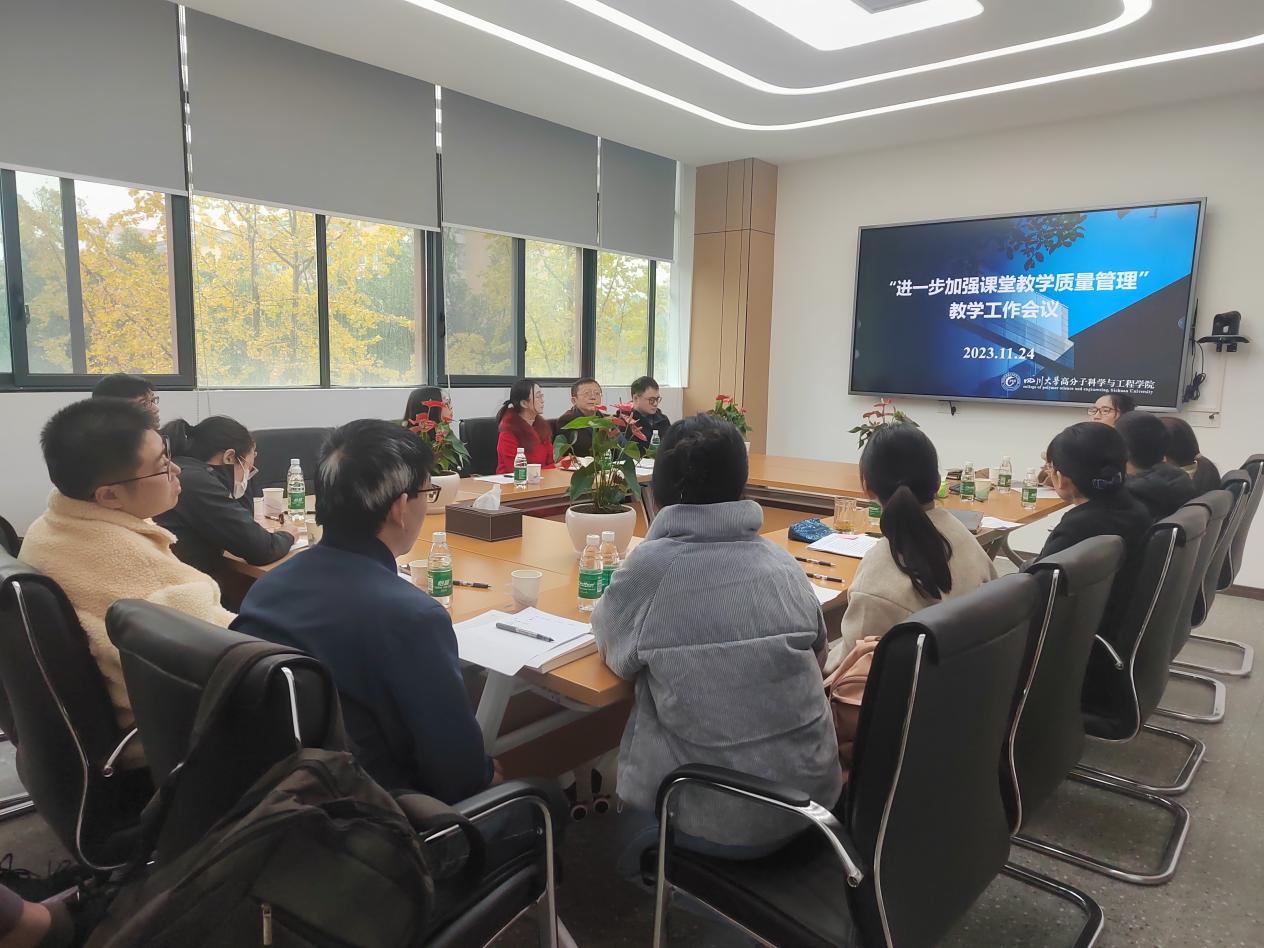 为加强课堂教学管理,树立良好教风学风,提高课堂教学效果,保障教育教学质量,2023年11月24日上午,8bo8足球比分 在科教楼208会议室召开了本科教学工作推进会暨课堂教学质量管理工作动员会。8bo8足球比分 副院长冉蓉、高分子材料系副主任任世杰、高分子材料加工工程系副主任高雪芹、医用高分子材料系副主任丁春梅、高分子科学与工程实验中心副主任周天楠、8bo8足球比分 督导组组长孙树东及骨干教师代表等20余人参加了此次会议。会上,冉院长汇报了学校关于...