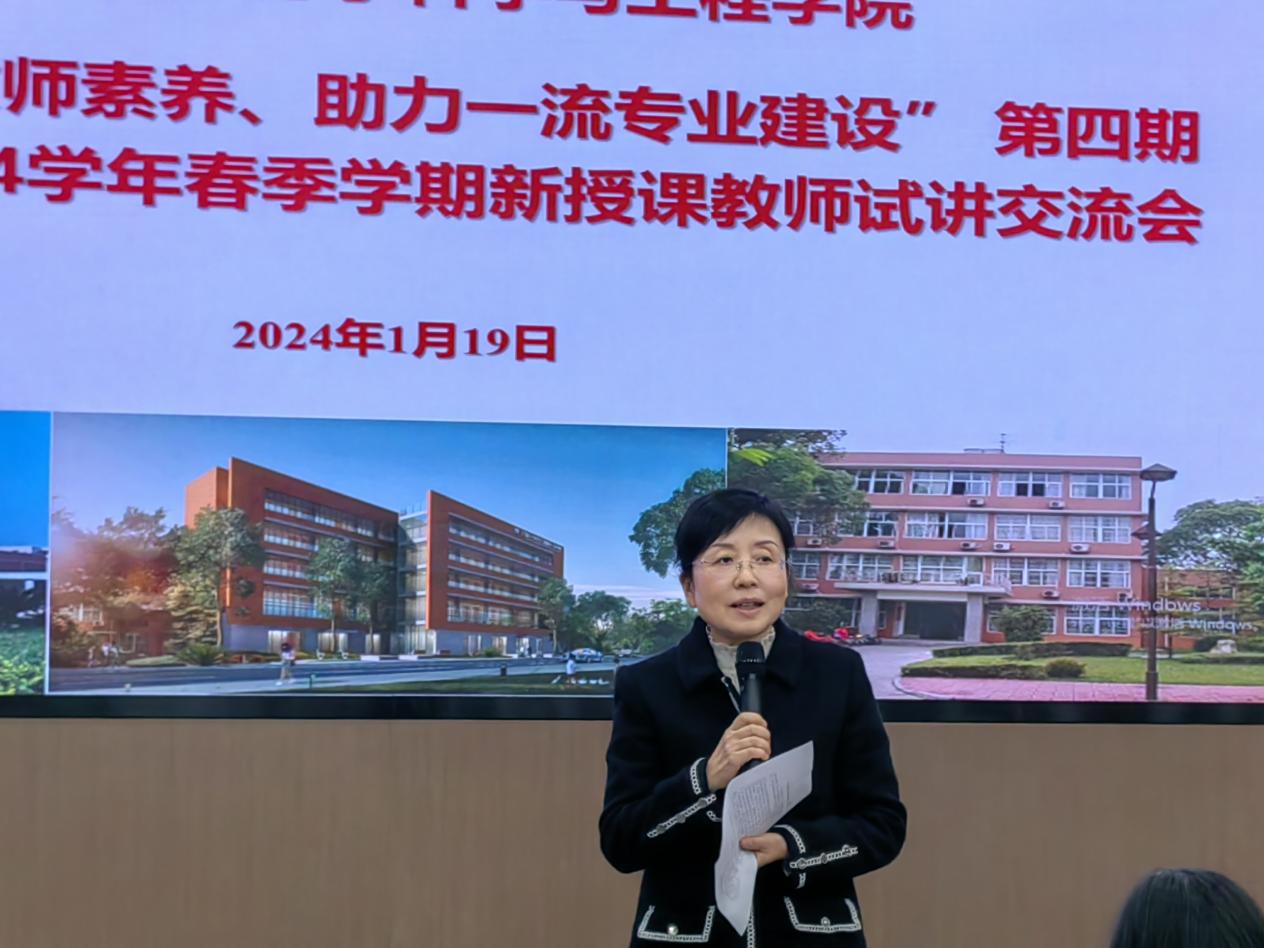 为深化8bo8足球比分 本科教育教学改革,促进基层教研活动创新发展,夯实青年教师教学基本功,提升青年教师育人能力,保障8bo8足球比分live 本科教学质量,2024年1月19日,8bo8足球比分live 举办了 “提升青年教师素养、助力一流专业建设” 系列活动(第四期)暨2023-2024学年春季学期新授课教师试讲交流会。会议由8bo8足球比分 副院长冉蓉主持。冉蓉副院长首先介绍了此次活动的背景,阐述了开展8bo8足球比分 青年教师素养提升系列活动的重要性。通过对最新的教学文件(《四川大学本科...