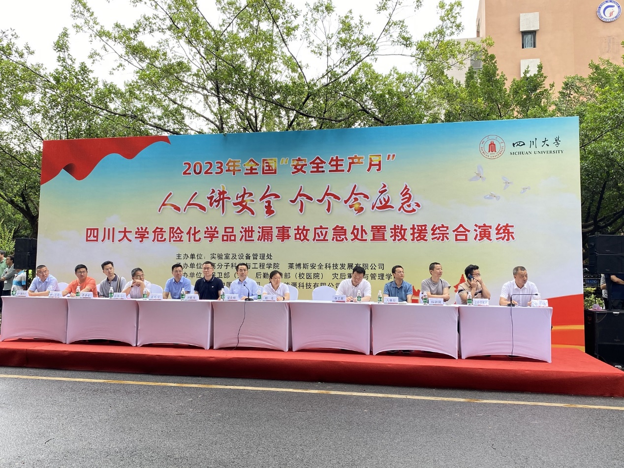 为落实教育部、四川省及学校关于2023年安全生产月的工作要求和部署,进一步提高实验室安全应急能力、完善应急体系,提升师生实验室安全应急能力和实战水平,营造“人人讲安全、个个会应急”的良好氛围,6月29日,由四川大学实验室及设备管理处主办,8bo8足球比分 与莱博斯安全科技发展有限公司承办的实验室危险化学品泄漏事故应急处置救援综合演练在8bo8足球比分 实验楼举行。四川大学副校长褚良银、清华大学化工系高级工程师杜奕出席活动,学校党...