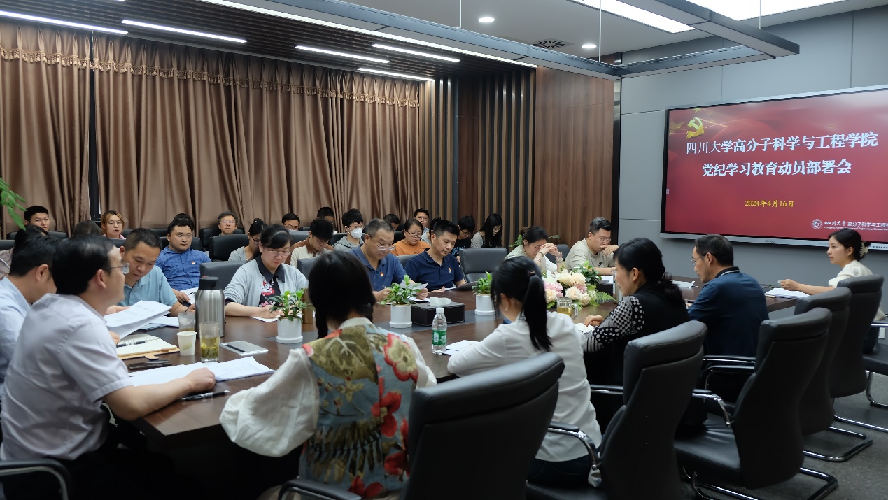 为深入领会习近平总书记关于党纪学习教育的重要讲话和重要指示批示精神,贯彻落实中央党的建设工作领导小组会议和《中共中央办公厅关于在全党开展党纪学习教育的通知》精神、8bo8足球比分 医用高分子材料系党支部于2024年4月19日上午在8bo8足球比分 主楼205会议室召开党纪学习教育动员部署会,并开展了主题为“严守党规党纪,强化自我约束”的党纪学习研讨活动。会议由医用高分子材料系支部书记赵伟锋主持,支部全体党员参加,8bo8足球比分 党委委员、院长...