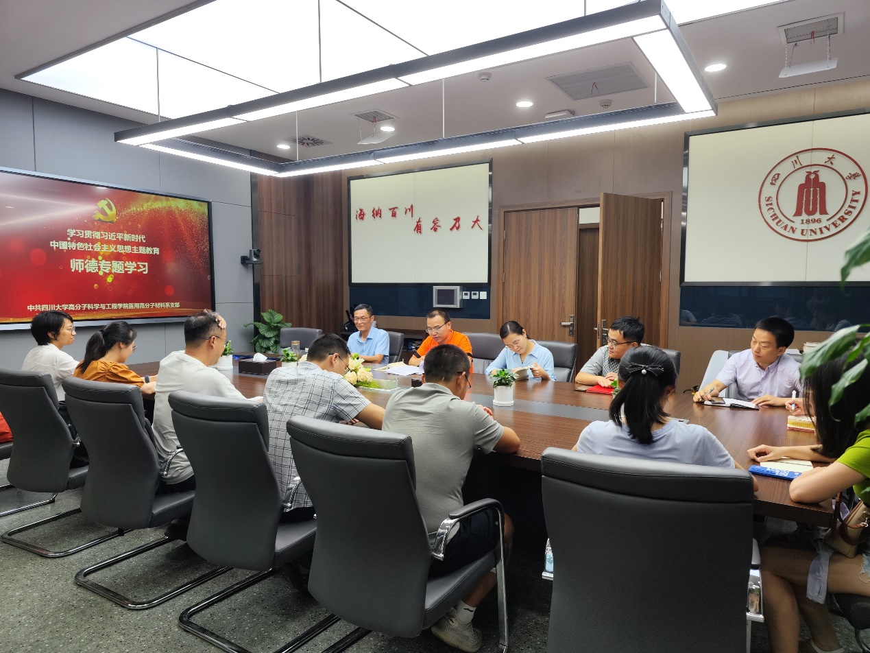 为深入开展学习贯彻习近平新时代中国特色社会主义思想主题教育,切实增强教师为党育人、为国育才的责任感、使命感和紧迫感。8bo8足球比分 医用高分子材料系支部于2023年7月6日开展了“强化教育引领,弘扬高尚师德”师德集中学习教育专题活动。会议由医用高分子材料系支部书记赵伟锋主持,支部全体党员参加,地点为科教楼207会议室。支部书记首先组织支部全体党员学习了习近平总书记关于师德师风的重要论述。同时,组织支部党员学习...